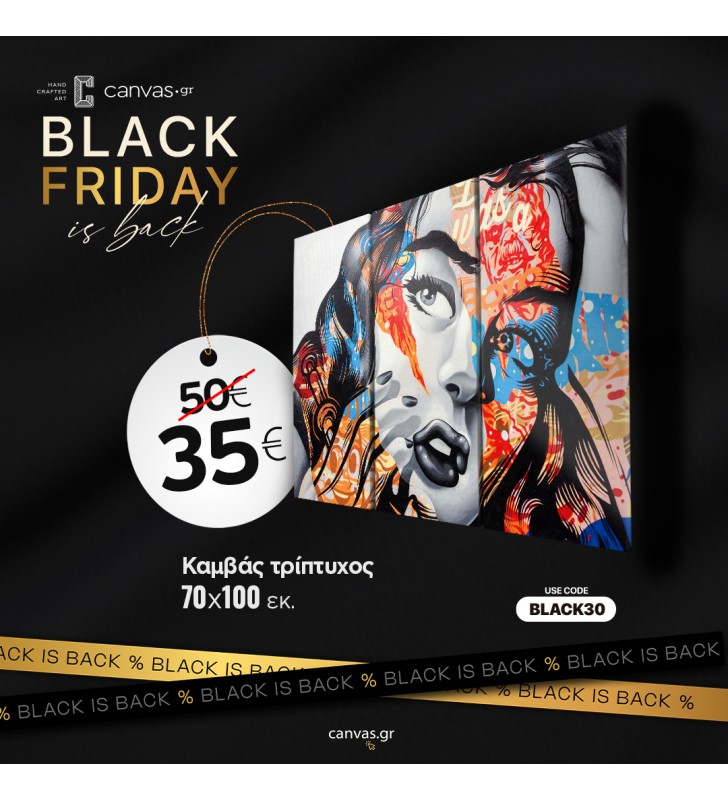 BLACK FRIDAY 2025 ΠΡΟΣΦΟΡΑ Εκτύπωση σε Τρίπτυχο Πίνακα Καμβά (με τελάρο) με δικό σας σχέδιο 70x100